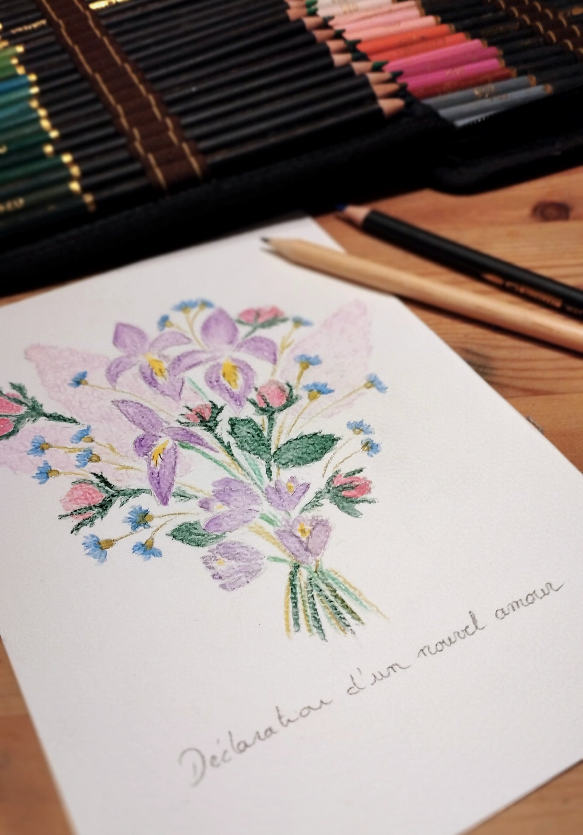 En février, les fleurs du jardin n'étant encore qu'à l'état de graines, je vous propose de redécouvrir la floriographie à travers l'aquarelle ou le crayonnage. Composez un bouquet pour déclarer votre amour nouveau ou au contraire ré-affirmer vos sentiments, votre amitié, ou bien créez un jardin invitant par exemple à la détente et au réconfort, en choisissant les fleurs qui expriment tous ces sentiments.